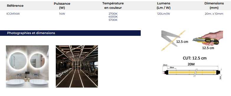 Ruban LED COB 20m - 14W/M 448 LED/M Coupe Tous Les 12.5 Cm